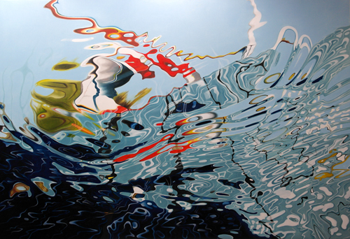 Handlauf gebogen, unter Wasser, 100 x 80 cm, Öl auf Leinwand, 2018 Curved handrail under water, 100 x 80 cm, oil on canvas, 1018