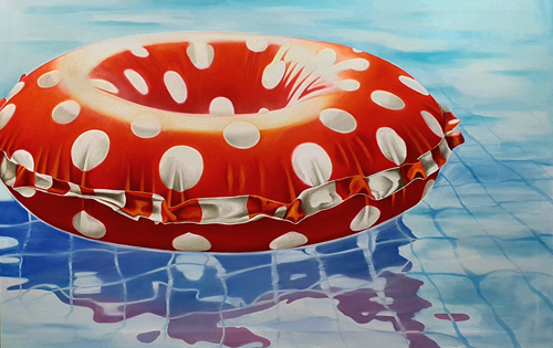 Schwimmreifen bunt, 50 x 70 cm, Öl auf Leinwand, 2021 - verkauft - Swimming hoop coloured, 50 x 70 cm, oil on canvas, 2021 - sold -